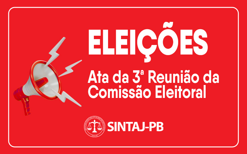 nov112023Uncategorized Clique no link abaixo para visualizar a ata: Ata-da-3a-reuniao-da-Comissao-Eleitoral-das-eleicoes-de-2023-do-SINTAJ-assinada 11/11/2023 Compartilhar esta postagem Share on XCompartilhar isto X Compartilhar isto FacebookCompartilhar isto Facebook Compartilhar isto WhatsAppCompartilhar isto WhatsApp Navegação de post:AnteriorPost anterior:Ata da 2ª Reunião da Comissão EleitoralPróximoPróximo post:NOTA DE ESCLARECIMENTO: Eleições SINTAJ-PB 2023Notícias RelacionadasAssembleia Geral Conjunta conclui apreciação da minuta do PCCR após mais de seis horas de debates10/12/2025Continuação da Assembleia Conjunta sobre o PCCR será realizada no dia 9 de dezembro02/12/2025CONFRA SINTAJ – SOUSA 2025 Informativo Oficial26/11/2025Assembleia conjunta discute PCCR em mais de seis horas de debates e avança na aprovação da minuta26/11/2025Proposta de minuta do PCCR dos Servidores do TJPB18/11/2025Edital de Convocação de Assembleia Geral Virtual Conjunta do SINTAJ-PB, da ASSTJE-PB e do SINJEP-PB17/11/2025