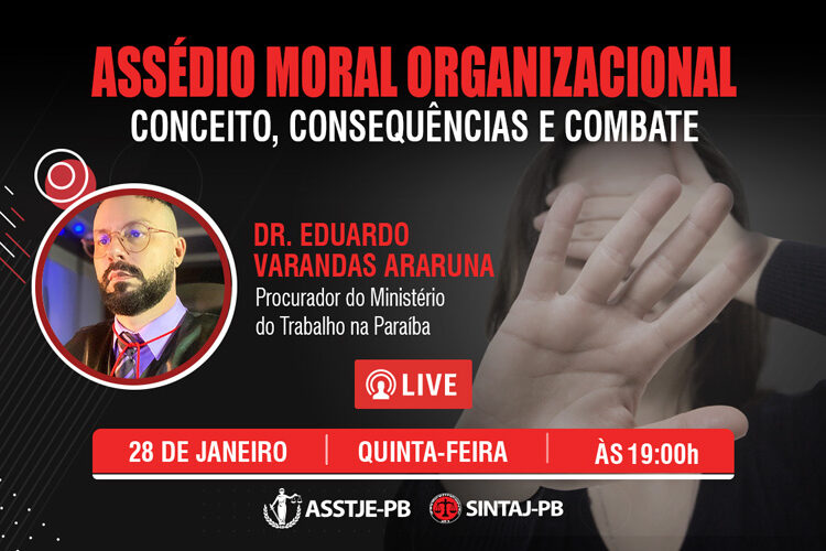 Entidades promovem live sobre assédio moral nesta quinta, dia 28