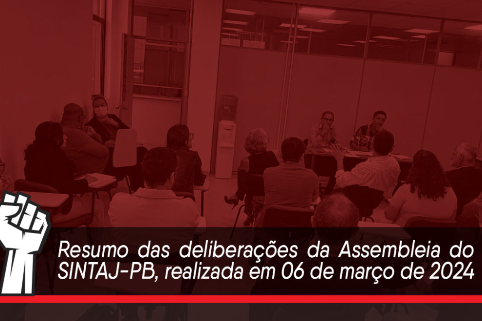 Resumo das deliberações da Assembleia do SINTAJ-PB, realizada em 06 de março de 2024