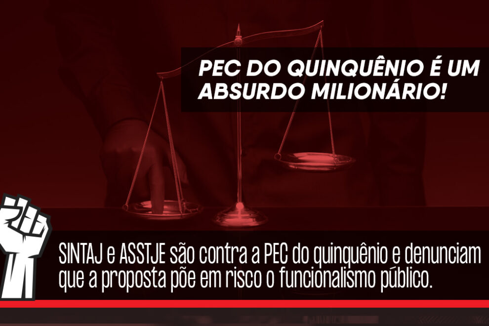 SINTAJ e ASSTJE são contra a PEC do quinquênio e denunciam que a proposta põe em risco o funcionalismo público